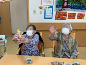 パン食い競争や玉入れ、新聞綱引きなど、笑い声の絶えない時間となりました。