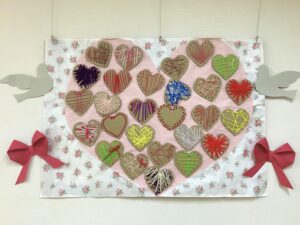 さらに、バレンタインにちなんでハート💝の壁飾りも制作しました。