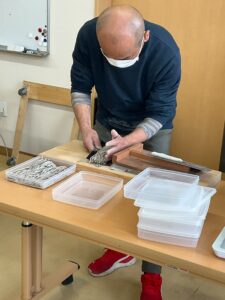 また、井尻交流センターの館長さんにお越しいただき、目の前でそば打ちを披露していただきました!