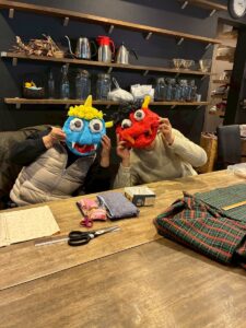 2月には新聞紙で骨格作りからスタートして鬼のお面を作り、