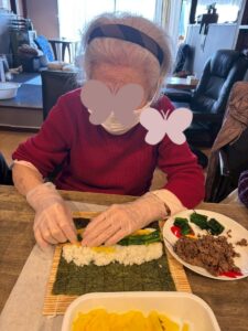 節分の日には利用者さんの声を受けてキンパづくり♪