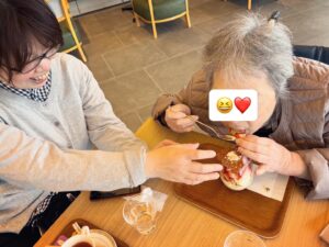 また別の日には、利用者様の「パフェが食べたい!」というご希望にお応えし、カフェへお出かけしました。